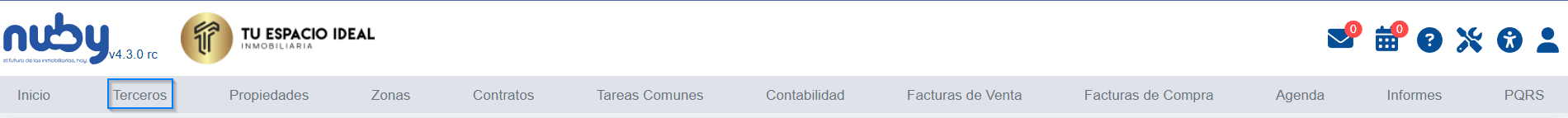 "Nuevo Tercero" → Para registrar una persona natural o jurídica.